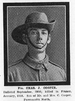 Son of Charles Cooper and Mary Ellen Cooper of Clifford Street, Parramatta, NSW