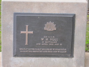 William Henry Voss was born in 1892 in Albury, New South Wales. He was the third born child and first born son of Ferdinand Voss and Matilda Hoare. He had 2 brothers and 4 sisters: May S Voss, Theresa Wilhelmina Voss, Rose Ellen Voss, James Martin Voss, Ferdinand Charles Voss and Grace Matilda Voss. He was of Roman Catholic faith. He was a farmer in Burrumbuttock, New South Wales.