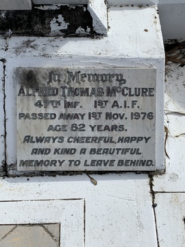 Help us honour Alfred Thomas Atkinson McClure's service by contributing information, stories, and images so that they can be preserved for future generations.