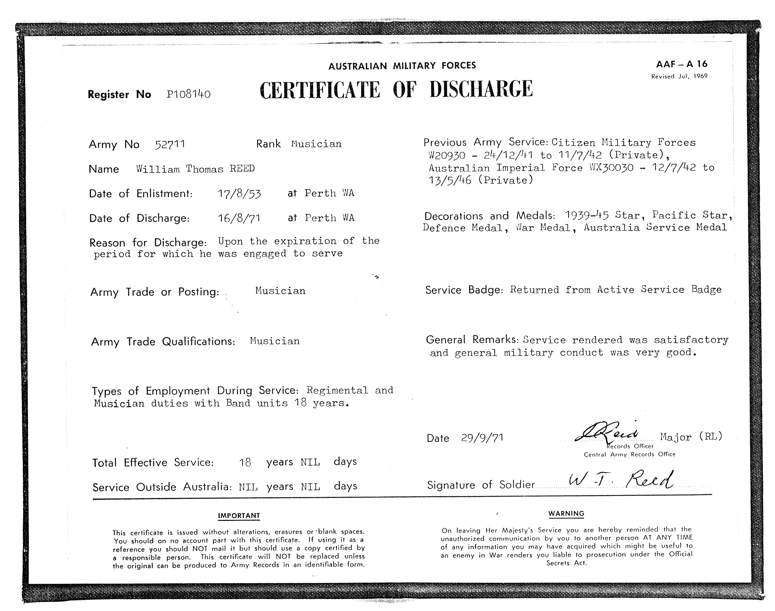 12 Jul 1942: | Enlisted Australian Military Forces (WW2) , Private, 52711 (WX30030), 16 Infantry Battalion AMF | |
