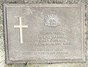 Private Percy John Carne Marino (Service Nos:V285552/VX115399) served in the ACMF (19 January 1942 - 19 July 1942) with 6th Field Ambulance, transferring to the AIF 'in the field' in Western Australia on 20 July 1942. Private Marino served in New Guinea and New Britain, and was attached to 6th Field Ambulance at Discharge on 5 September 1947. His father and three brothers also served in WWII.