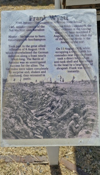 Memorials: | Australian War Memorial Roll of Honour, Julia Creek MacKinlay Shire Honor Roll, McKinlay War Memorial, Villers-Bretonneux Memorial |