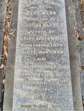 Husband of Georgina Harriet WEBB nee HUNT, 'Carlisle', 26 Retreat Road, Newtown, Geelong, Victoria