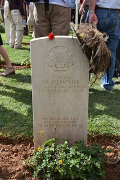 After Gallipoli, and the charges against him were dropped, Jim was sent to Palestine. There he took part in and was among the first killed in the Charge of the Australian Light Horse Brigades on Beersheba on the last day of 1917.