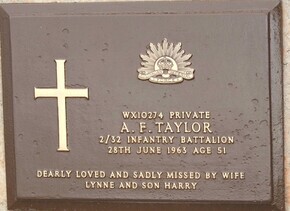 Eldest of three brothers who served in WWII, Private Andrew Fyfe Taylor (Service No:WX10274) enlisted in the AIF on 18 December 1940 with 13 Training Battalion - graded Driver Mechanic. Private Taylor served with 2/32 Infantry Battalion in the Middle East (9 September 1941 - 18 February 1943) and New Guinea (21 October 1943 - 9 March 1944), and was hospitalised with Pneumonia and Malaria. Private Taylor was attached to 2/32 Infantry Battalion at Discharge on 22 February 1945.