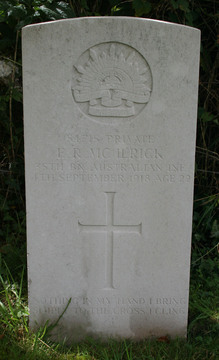 Private Eric Roy McIlrick he died at 6 am on 4th September, 1918 at Military Hospital, Fovant, Wiltshire from Pneumonia.