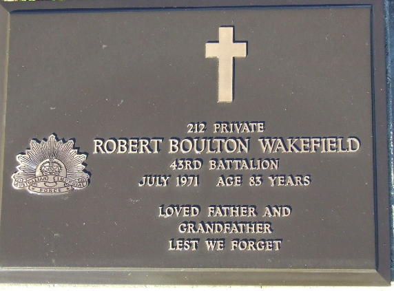 Help us honour Robert Boulton Wakefield's service by contributing information, stories, and images so that they can be preserved for future generations.