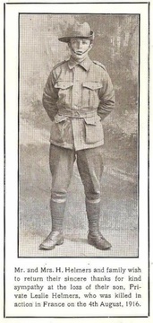 Help us honour Leslie Vernon Helmers's service by contributing information, stories, and images so that they can be preserved for future generations.