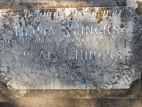 Born at Hartley Vale, New South Wales on the 13th November 1886 to Thomas Henry (died 8.3.1910, Newcastle Hospital, N.S.W. as HICKS, age 48 ), and Annie Herd Hincks (died 3.3.1917, Newcastle, N.S.W., as HARRIS, age 52, Alex enlisted on the 27th November 1915 at West Maitland, N.S.W.