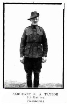“It is with feelings of regret that I have to inform you that your son, Sidney Arnold Taylor, was wounded on July 17 whilst in command of his gun in action. One of the enemy's high-explosive shells burst on the gun shield, killing No. 2 and No. 3 [2] on the gun, and severely wounding your son. Although badly hit, he bore himself in a gallant and unselfish manner by insisting that the wounds of his comrades be attended to first, and making light of his own wounds. He is a fine example of what a soldier should be, and it is men of his stamp who are to-day upholding the great traditions of the British Army. I hope for his speedy recovery.” [3]