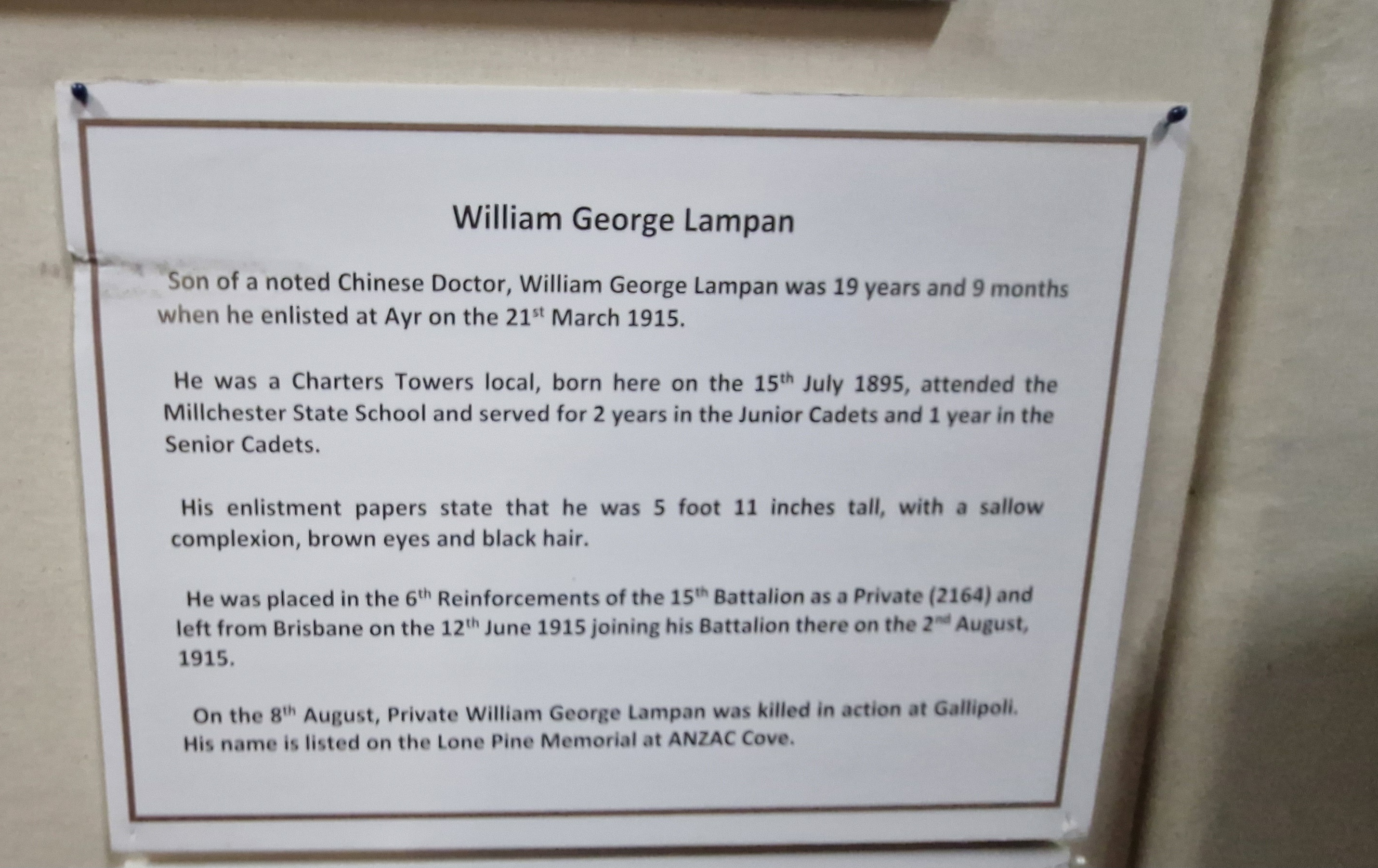 NOK listed as Sister, Miss Mary Ann Lampan, c/o W H McAllister, Homehill via Bowen, Queensland
