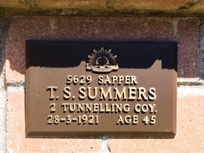 Born at Muirkirk, Ayrshire, Scotland about 1876 to Thomas Snr and Colini Summers nee Shearer, Thomas enlisted May 1916 with the Tunnelling Companies Reinforcements at Broadmeadow, N.S.W.