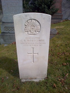 Sapper Whitcombe enlisted in the Australian Army on 17th February 1916. He embarked at Sydney for passage to Europe on 7th October 1916 aboard HMAT A40 Ceramic. Charles served with 1st Field Company Australian Engineers in the Somme sector of the Western Front where he was wounded on 4th October 1917 - facial shell wound. He was evacuated to England on 16th October 1917, dying the following day at 1st Eastern General Hospital, Cambridge, aged 33. His parents were still living in Nottingham and Charles was buried in the family plot at 2.00 p.m. on 22nd October 1917 in Nottingham General Cemetery (grave ref. 2334.112).