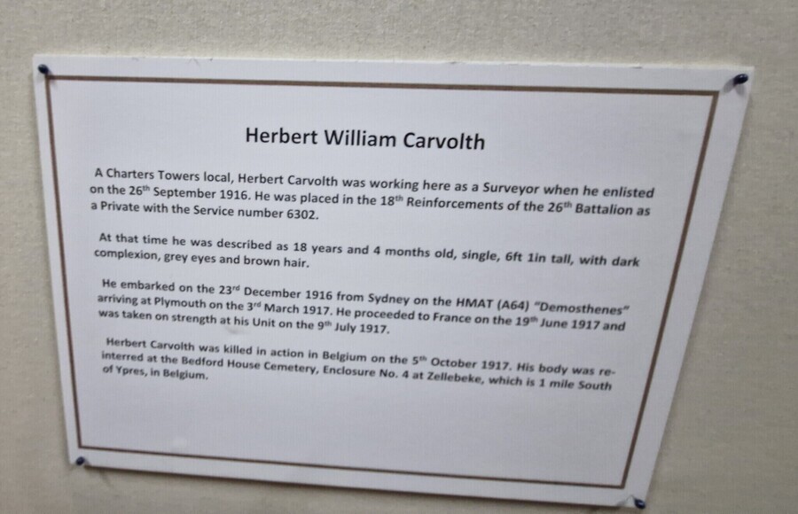 26 Sep 1916: | Enlisted AIF WW1, Private, 6302, Charters Towers, Queensland | |