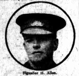 The late Signaller Harrold Allen, who was killed in action in France on April 11, was the youngest son of Mr. and Mrs. John Allen, of Oak avenue, Unley. He left Australia on January 11, 1916, and after being in Egypt for some months was sent to France, where he saw continuous service until the time of his death. The deceased, who was 23 years of age, was educated at the Goodwood Public School,and prior to enlisting was employed as a clerk in Mr. W. Kither's office, Rundle street. Two of his brothers are also on active service.