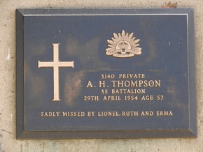 2 Jun 1919: | Discharged AIF WW1, Private, 3140, 35th Infantry Battalion |