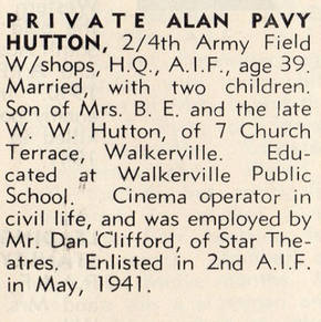 Help us honour Alan Pavy Hutton's service by contributing information, stories, and images so that they can be preserved for future generations.