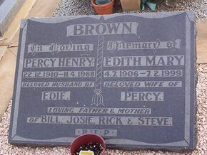 Percy lived to be 77 and died on the 11th April 1988. He was buried in the North Brighton Cemetery, Section E Row 4 East. Edie lived to be 92 and died on the 7th February 1999.