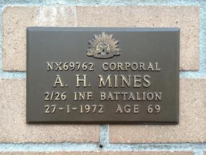 11 Mar 1941: | Discharged Corporal, NX69762, 2nd/26th Infantry Battalion, Date and Posting at Discharge: 22/01/1946; 2nd/26th Australian Infantry Battalion; (NAA, Pg-6) Service Record of Corporal: Albert Hartley MINES; S-NO: NX69762. | |