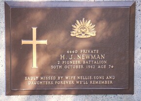 Private Henry John Newman (Service No:4440) enlisted in the AIF on 16 January 1917 and was attached to 2nd Pioneer Battalion when he embarked with his Unit on 30 October 1917 from Melbourne for Devonport on board HMAT A6 Aeneas. Private Newman embarked from England for Fremantle on 3 March 1919 on board HT Euripides, and was attached to 2nd Pioneer Battalion at Discharge on 10 August 1919.