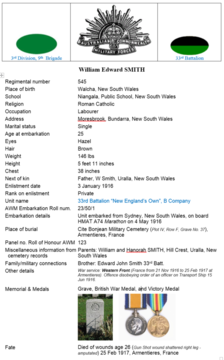 Memorials: | Australian War Memorial Roll of Honour, Bundarra WWI War Memorial, Uralla St. Joseph War Memorial Gates |