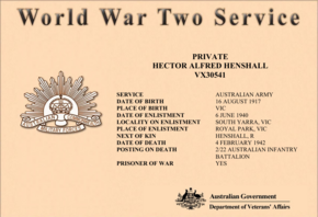 Help us honour Hector Alfred Henshall's service by contributing information, stories, and images so that they can be preserved for future generations.