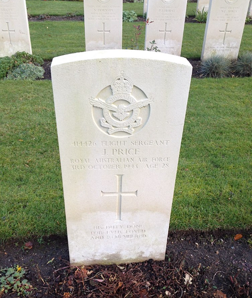 3 Oct 1943: | Involvement Royal Australian Air Force, Flight Sergeant, 414426, No. 158 Squadron (RAF), Air War NW Europe 1939-45, M.I.A. presumed dead. |