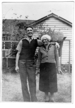 The later photo shows a much more sophisticated young man, suave by some standards, fashionable with his cardigan and moustache. The confidence brims from him as he stood with his mum outside the front of their Canley Vale home. It must have been sometime in late 1941/early 1942 and he was probably home on leave. Everyone adored Vincent – especially the ladies, according to his brothers.