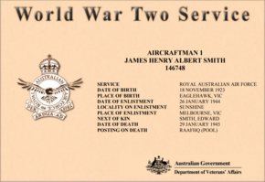 Memorials: | Australian War Memorial Roll of Honour |