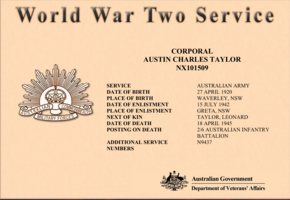 15 Jul 1942: | Enlisted Australian Military Forces (WW2) , Corporal, NX101509, 2nd/6th Infantry Battalion |