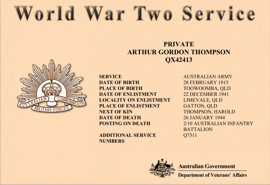 Help us honour Arthur Gordon Thompson's service by contributing information, stories, and images so that they can be preserved for future generations.