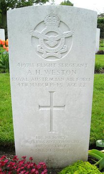 Flight Sergeant Weston was 22 and the son of Evan Harold Edward and Laura Evelyn Weston of Parkville, Victoria, Australia.