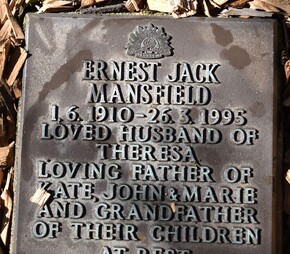 Private Ernest Jack Mansfield (Service No:QX3617) enlisted in the Australian Army on 3 November 1939 and served with 2/12th Infantry Battalion in the Middle East and New Guinea. Private Mansfield was WiA in New Guinea on 11 January 1943 (GSW to thigh and hip) and was Discharged on 27 July 1944 (Medically Unfit).