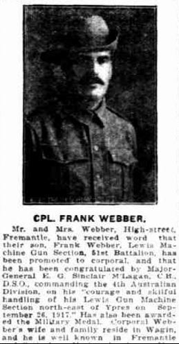 31 Oct 1917: | Honoured Military Medal, Military Medal awarded 31.10.17 (vide first ANZAC routine order No. 88 of 31.10.17) for bravery in the field as per service record | |