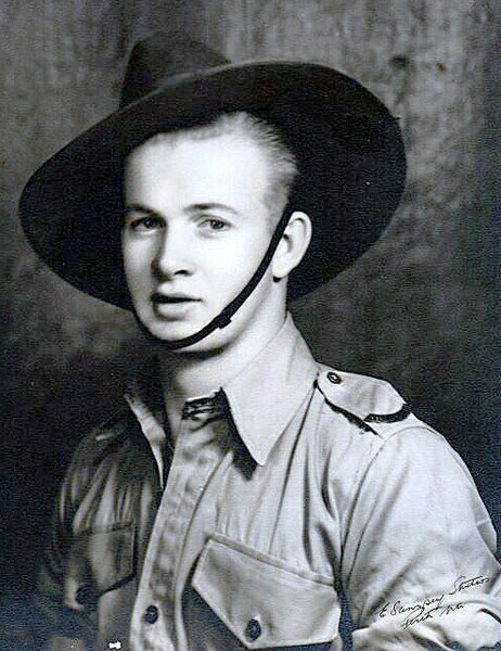 Ron was a Clerk in Armadale when he enlisted in the Army in 1940, and in 1945 in Armadale, married Ella Joan Devereux (b1920 in Boddington, Western Australia) - Ella was working as a Shop Assistant in Armadale. Following his Discharge from the Army in October 1945, Ron and Ella lived in Cuballing, Marradong and Boddington, where they raised their family and Ron was Secretary of the Road Boards. Ron and Ella lived in Mt Barker in the mid 1950s, where Ron was a Carrier, before returning to Boddington as Road Board Secretary in 1958. Ron and Ella moved to Belmont in the 1960s, where Ron was a Farmer and, following Ellas death in 1972, Ron was Proprietor of the Tammin Hotel. Ron died in 2008.