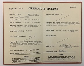 26 Aug 1969: | Discharged Australian Army (Post WW2), Corporal, 54768, Expiration of 6yr engagement |