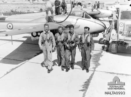 The Squadron's first permanent deployment after the war saw No 75 Squadron personnel, operating Royal Air Force Vampire jet fighters in defence of the Mediterranean island of Malta.